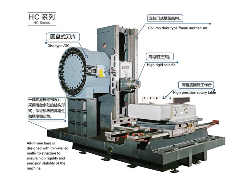 该系列是威海华东数控在吸收国内外先进机床设计理念的基础上自行设计开发的卧式加工中心,本机床采用大跨距导轨设计,机床整体刚性好,承载能力强,配有数控转台,适合对箱体、机床底座、立柱等多面体零件的加工,可实现一次装夹完成铣面、镗孔、攻丝等多工序的粗、精加工。